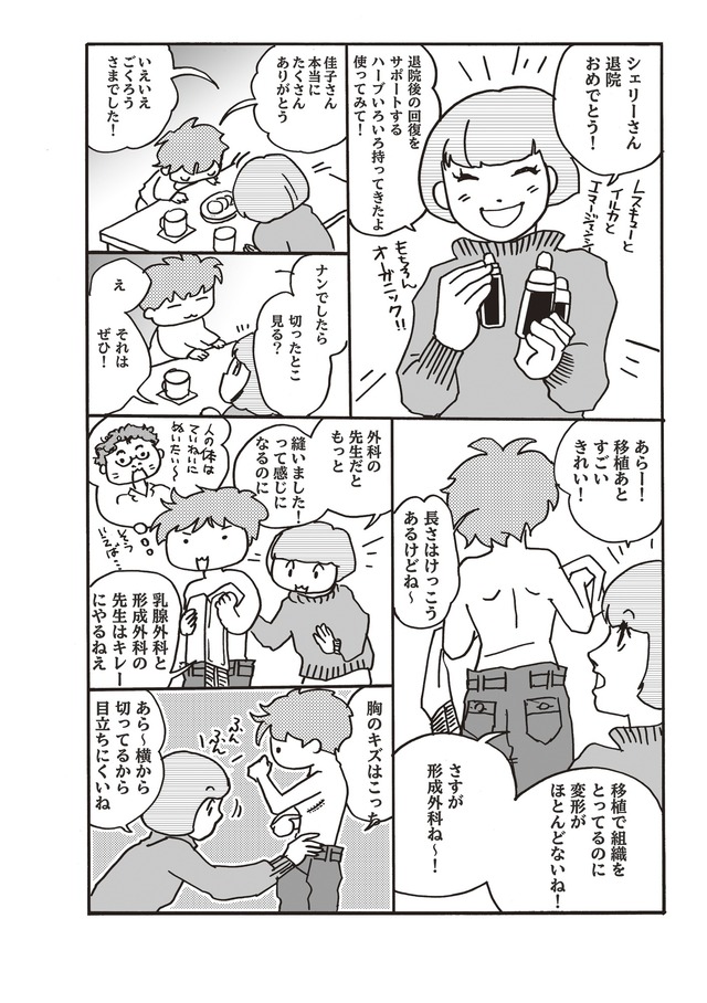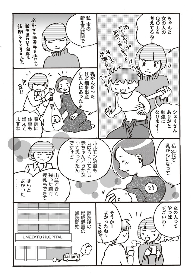 年一の健康診断で再検査の連絡が!そしてまさかの乳がんが判明!「病院ってどうやって選べばいいの?」「乳房の再建ってどうするの?」「お金はどれくらいかかる?」「術後ってどんな感じ?」家族やママ友、乳腺外科医、形成外科医、たくさんの人と関わりながら乳がんを乗り切る姿をポジティブに描く闘病マンガ。
