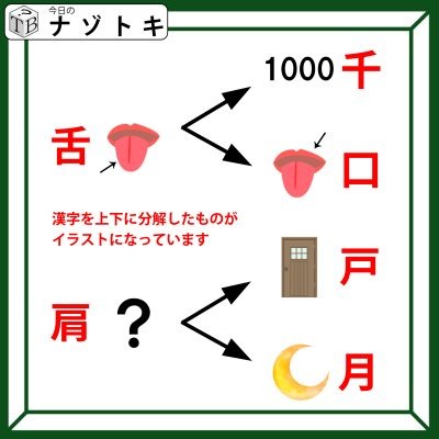 下の2つのイラストは上から「戸」と「月」と推測することができます。この二つの漢字を合体させると「肩」になります。