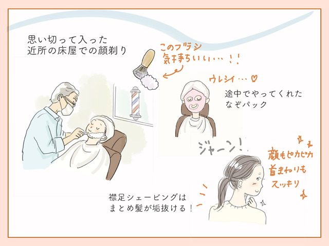 そんな気分のまま、ふらっと入ったのが近所の床屋さんでした。正直、女性ひとりで入るのは少し勇気がいる。でも「このまま年を越すのは、ちょっと嫌だな」と思って。お願いしたのは「顔剃り」です。