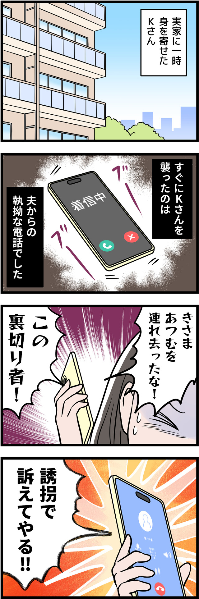 夫の教育虐待により、ストレスで壊れそうになっていた息子を連れて家を出たEさん。しかし夫は「誘拐で訴える」と脅してきました。