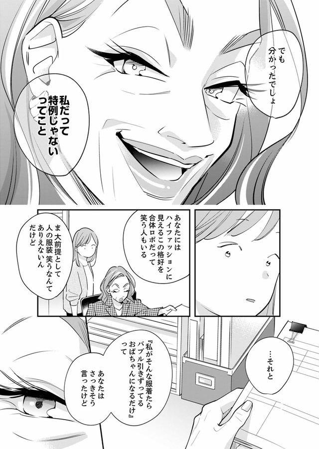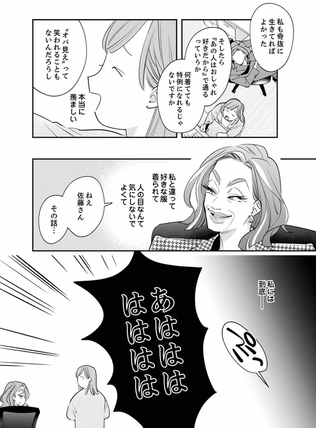 周囲の目を気にして生きる37歳の智子。彼女が働く企業の総務部には、他人の目を気にせずど派手なファッションに身を包み、空気を読まず自由にふるまう初瀬はるがいる。結婚や年齢の呪縛に苦しむ智子は、「クセ強の高齢独女」と揶揄されながらも他人の評価を気にしない初瀬の姿に救いを見出していく。「オバ見え」や「結婚」といった社会の圧と戦い、自分らしさを取り戻そうとする物語。