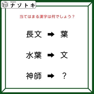 今日は二字熟語から漢字一文字になるナゾトキです。