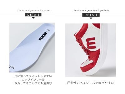 【4E】moz(モズ):なんと「4E」の超ゆったり幅スニーカーを発見! 軽量設計の約210g。中敷は足に沿いやすいカップインソールを採用