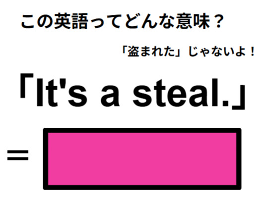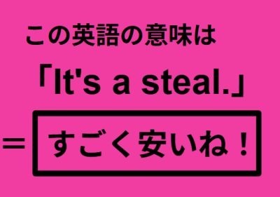 steal =「盗む、盗み、盗品」だけでなく「格安品、ただのようなもの」という意味もあります。