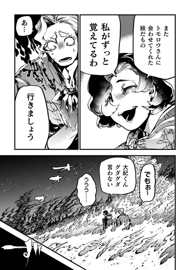 オーナーに勧められるままに絵に近づくと、大紀は絵の中の世界に引きずり込まれてしまう。