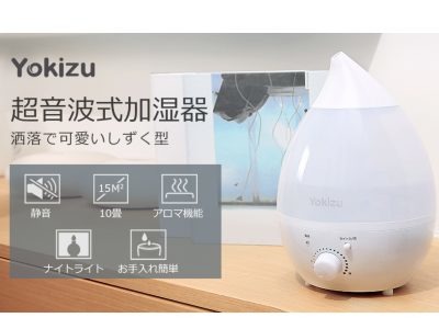 Yokizu 加湿器 小型 卓上 大容量 除菌 アロマ 超音波式 LEDライト しずく型 お手入れしやすい 静音 省エネ 加湿機 次亜塩素酸水対応 デスク オフィス 寝室 リビング 乾燥対策 焚き防止 おしゃれ コンパクト 6-10畳 ホワイト
