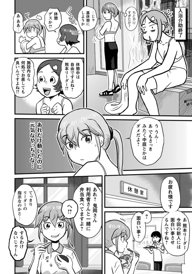 新人・鬼岡と、彼女の教育係となった熊本。そこに待ち受けている理想と実態。抗いながら、揉まれながら、鬼岡と熊本は入所者に寄り添い「明日」を紡いでいく。