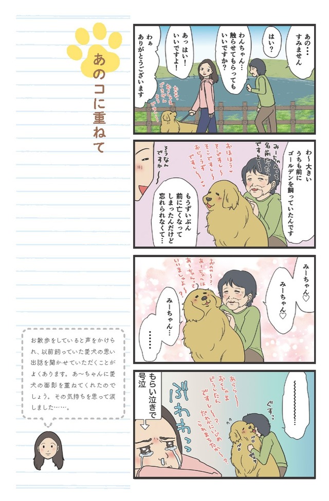 亡くなったゴールデンを想う女性が、わが家の愛犬に触れ…もらい泣きして号泣…【おさんぽですし! おしゃべり犬とイライラ猫の日記 #16】 | NewsCafe