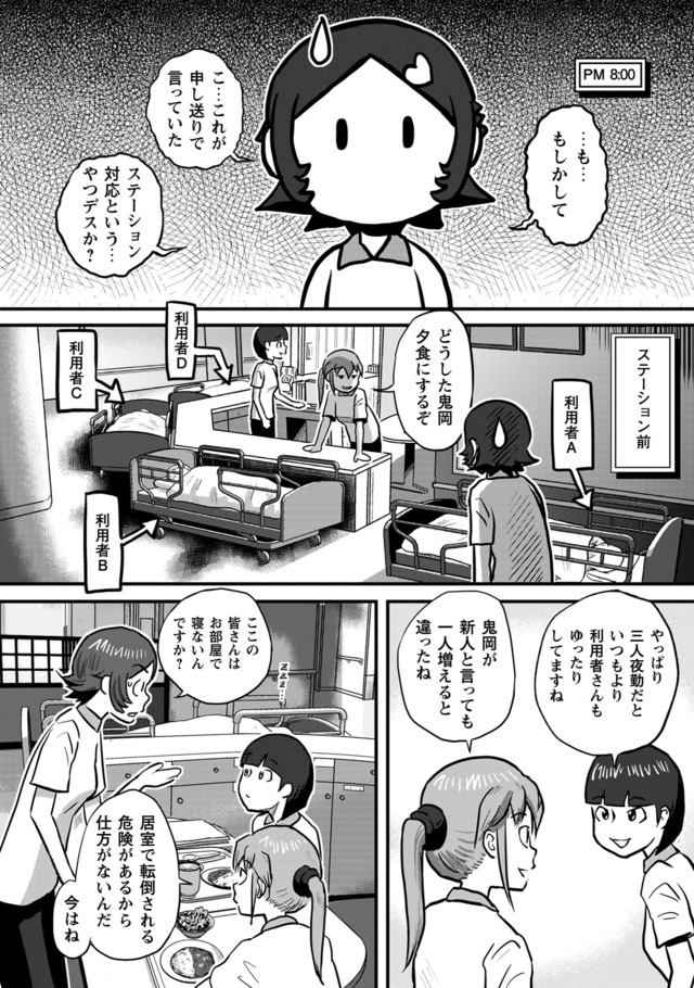 鬼岡明(おにおか めい)は、なかなか就職先が見つからず苦労していたが、とあることがきっかけで介護施設の認知病棟で働き始めることとなる。