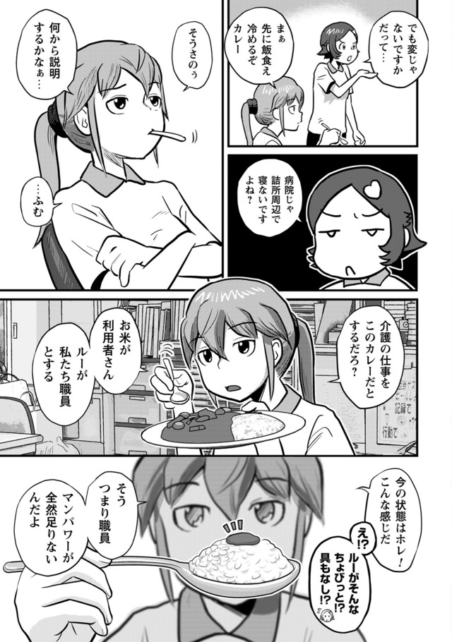 新人・鬼岡と、彼女の教育係となった熊本。そこに待ち受けている理想と実態。抗いながら、揉まれながら、鬼岡と熊本は入所者に寄り添い「明日」を紡いでいく。