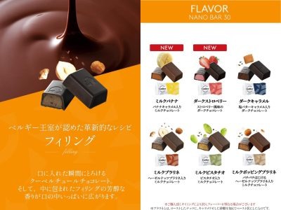 【ガレー】ベルギー王室御用達のチョコ。いろいろなフレーバーのフィリングを上質なチョコで包んだ、人気の「ナノバー」。間違い探しができるギフトカード、限定ショップ袋つき!
