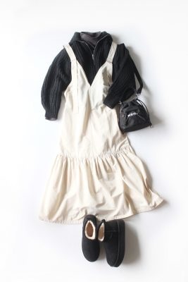 袖丈が手の甲まであって、親指用の穴が開いてたデザインは、アウトドアアイテムとの相性は抜群。座談会の記事ではインナービューティ料理研究家・國塩亜矢子さんのキャンプコーデも紹介されています。ぜひご覧になってみてください。こちらでは普段使いで「私ならこう着る!」をご紹介します。