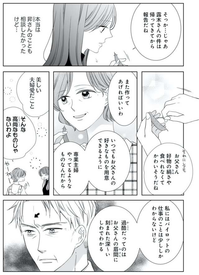 パイロットの元恋人に裏切られた過去から縁談を断るつもりだったが、待ち合わせの場で露木も結婚する気がないと知り、ひと安心する。