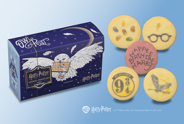 「<ヘドウィグ>スイーツギフト(10個入)」は、価格1000円(税込1080円)で、1月30日から2月下旬頃まで販売。ハリー・ポッターの相棒「ヘドウィグ」をデザインしたスイーツギフトボックスで、「バースデーケーキ」や「バーティー・ボッツの百味ビーンズ」など、物語に登場するアイテムをプリントしたクッキーをアソートしている。