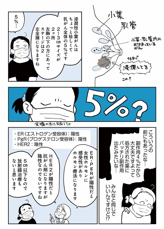 乳がん検診へ行くと「5%の希少乳がん」と告知され、手術を受けることに。