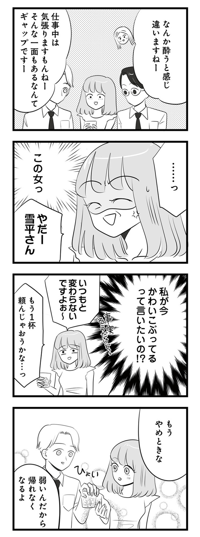 男の前だと態度が変わるあざとい女。会社の飲み会でも「お酒弱いんです」アピール全開!【今日もワタシが一番カワイイ #7】