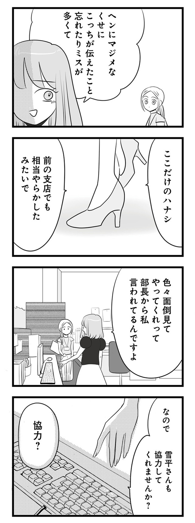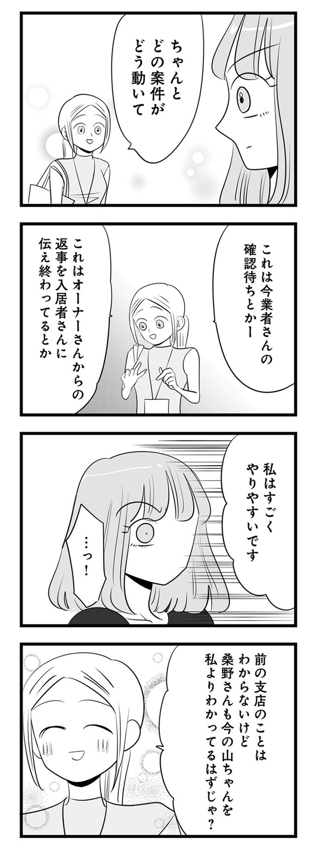 産休から戻った雪平の自然体な仕事ぶりと対人スキルにやきもきし、桑野は密かに雪平をライバル視する。