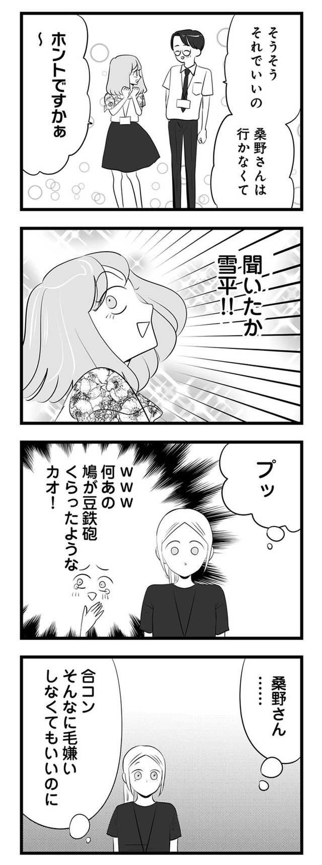 産休から戻った雪平の自然体な仕事ぶりと対人スキルにやきもきし、桑野は密かに雪平をライバル視する。