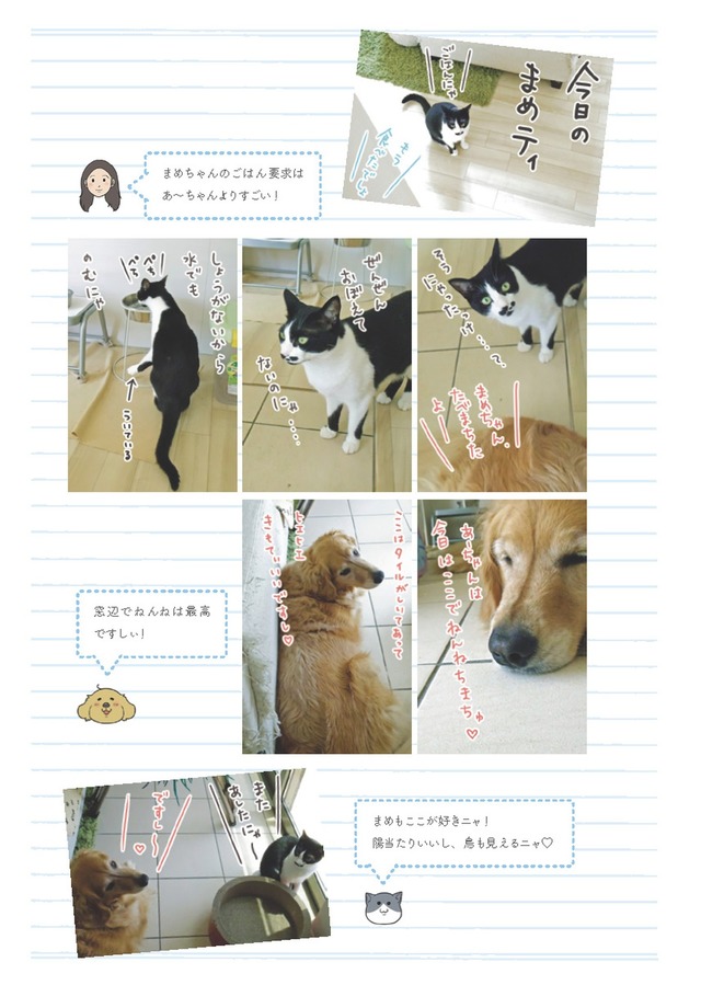 「ですし!」が口癖のゴールデンレトリーバー・アーティと、いつもイライラ怒ってばかりなのに家族思いなハチワレ猫・まめ。