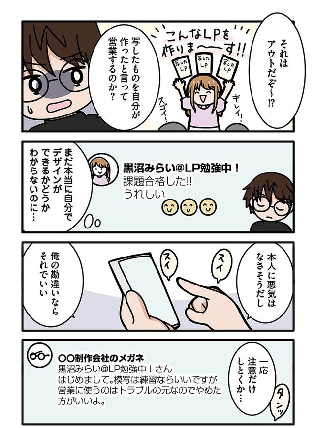 模写したLPを使って営業開始! すると見知らぬ人から注意を受け、講師に相談すると…【ブラック企業で闇落ちしてWebデザイナーを目指したけれど、キラキラ詐欺に騙された話 #12】