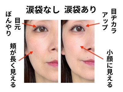 涙袋メイクを取り入れると、目元に視線を集めることができる、顔の縦幅のバランスを整えるといった効果も期待でき、顔全体が引き締まって見える効果が期待できます。