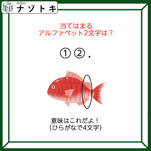 イラストと丸に囲まれた部分が何かを考えていきましょう。この魚は「鯛(たい)」です。そして丸で囲まれたところはいわゆるお尻の部分です。