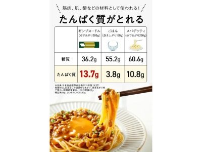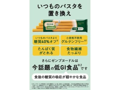 コレははずせない、ZENBの人気No.1商品。通常のパスタよりも糖質40%OFF、たんぱく質たっぷり! 電子レンジでの調理もOK