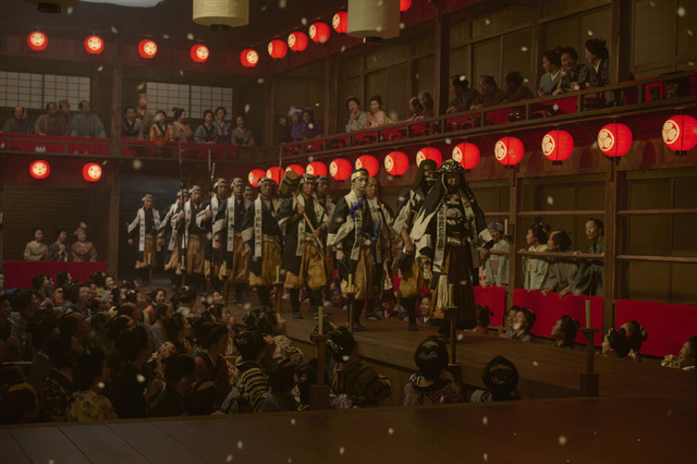 見どころの一つが、森田座での江戸歌舞伎の様子を、芝居小屋ごと丸ごと再現したリアルさ。300人もの客が座って観劇できる規模の劇場が、東映京都撮影所のスタジオ内に組まれ、舞台と客席の境目のない、江戸歌舞伎ならではの臨場感が体感できる。