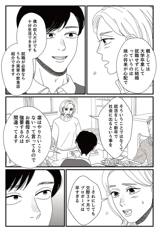 九州の地方都市で暮らす恵美は、大学3年生の娘・凛から「就活はせず、32歳の彼氏と卒業後に結婚する」と告げられ頭を抱える。