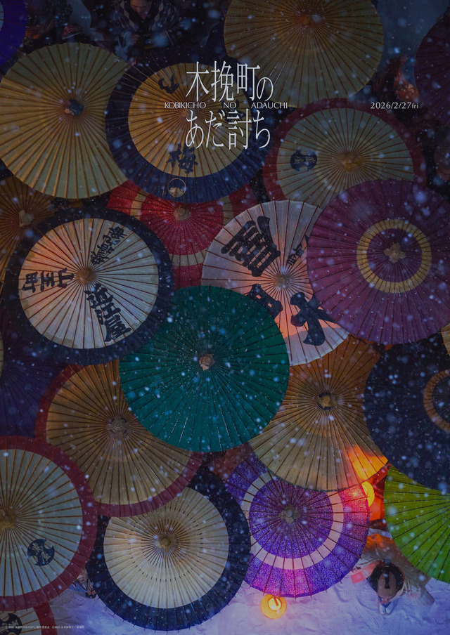 そんな仇討ちの様子を見守る200人の見物客が差す無数の和傘が重なり合う圧巻の光景も切り取られている。