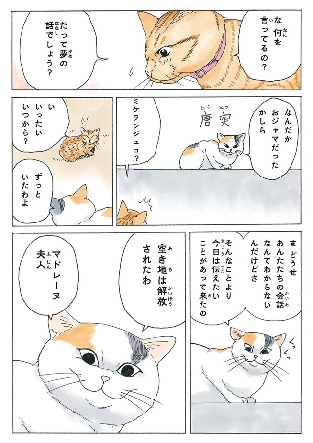 学校の愉快な仲間たち、猫たちとマドレーヌ夫人とのやり取り、思わずクスリと笑ってしまうエピソードも!うれしい出会いもあれば、いつか別れの日もやってくる――。