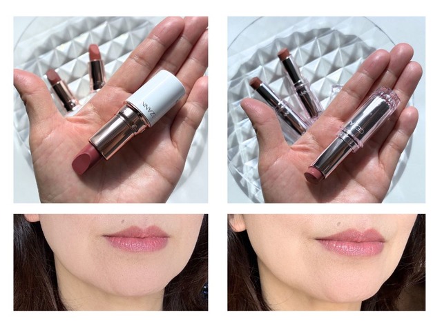 また、どちらも発色がいいのですが、「セザンヌ ラスティングステイリップカラー」は、飲食後ほどよく血色感を残すところや唇への密着感、唇がキレイに見える補正力が素晴らしいと感じました。