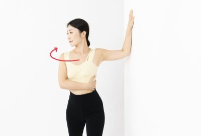 【2】上半身をひねり、胸の筋肉を伸ばす