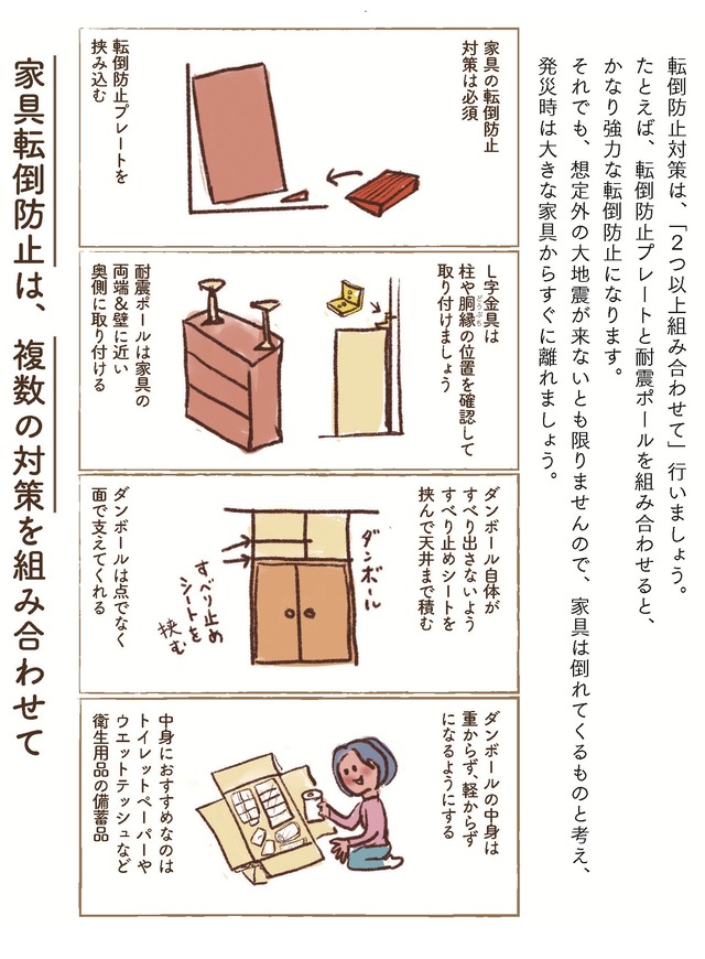親しみやすいマンガと、防災士としての確かな知識、そして主婦だからこその身近な防災アイデアで、災害に遭ったときはもちろん、ふだん備えておくべきことや、災害発生後に留意したい最新情報までをわかりやすく解説します。さらに、巧妙化する詐欺や犯罪への対策も紹介。