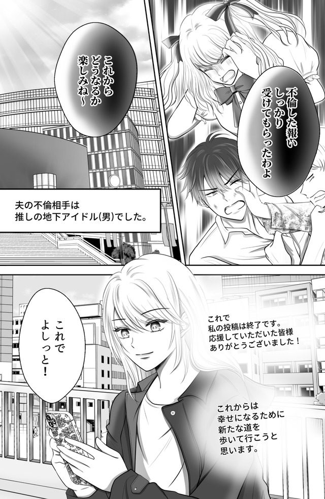 ※本記事はともりん著の『夫の不倫相手は、推しの地下アイドル(男)でした。』から一部抜粋・編集しました。BLの要素を混ぜ合わせた不倫夫への復讐劇をお楽しみください