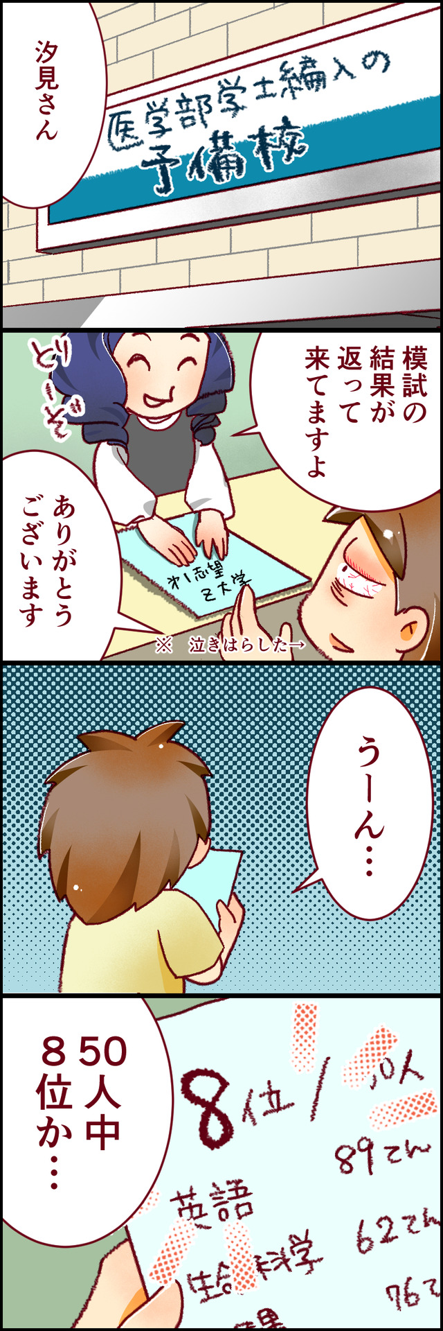 失恋で泣きはらした目をしていても、分析と努力を惜しまないさつき…。果たして彼女は報われるのでしょうか?▶▶「え…泣きそう」赤の他人からの言葉で、こんなに心が温かくなるなんて。医学部受験受験、大詰めの29歳がが「ゲットした」ものとは