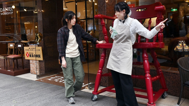 花屋で働く姿や祖母(大方斐紗子)の手をそっと握る様子、家具店「ダニエル」の店員に道を尋ねるシーンなど、繁子の愛らしくも謎めいた日常。