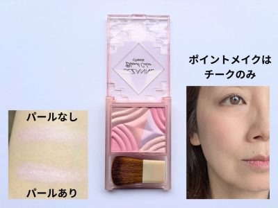 「ブレンドカラーチーク 02 ムードピンク」(税込価格781円)は、本来なら40代にとっては鬼門的なカラー。蛍光っぽい青みピンクで、肌から浮きやすく、若作り感が出る可能性があります。