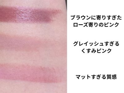 一方で、落ち着いたトーンのピンクを選ぶと、今度は一気に老けて見えることも。ブラウンに寄りすぎたローズ寄りのピンク、グレイッシュすぎるくすみピンク、マットすぎる質感は要注意です。こうした色は、ただでさえ減っている血色をさらに削ってしまうことがあります。大人のピンク選びは、明るすぎてもダメ、くすませすぎてもダメ、青みが強すぎてもダメという、なかなかシビアな世界なのです。