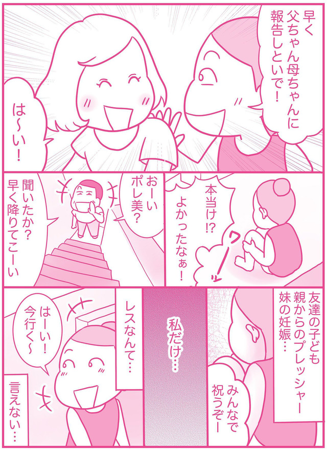 訪れたチャンスも逃し、実家では妹の妊娠で期待が高まる中、進まない妊活や子宮頸部の異常、義姉の妊娠が重なり追い詰められていく。