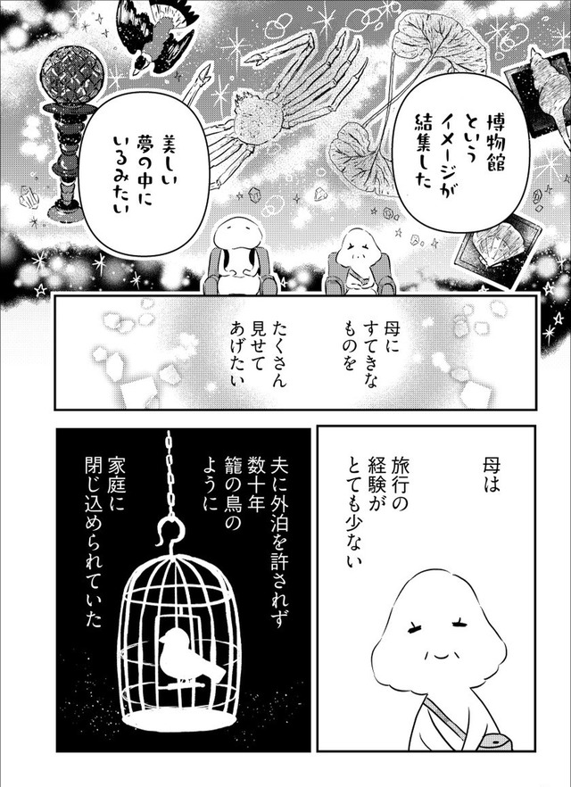 年間に何度も旅する漫画家の“私”が、旅慣れない母を連れて向かったのは関東への二人旅。壊れたサンダルで現れる母に始まり、行く先々でハプニング続出。