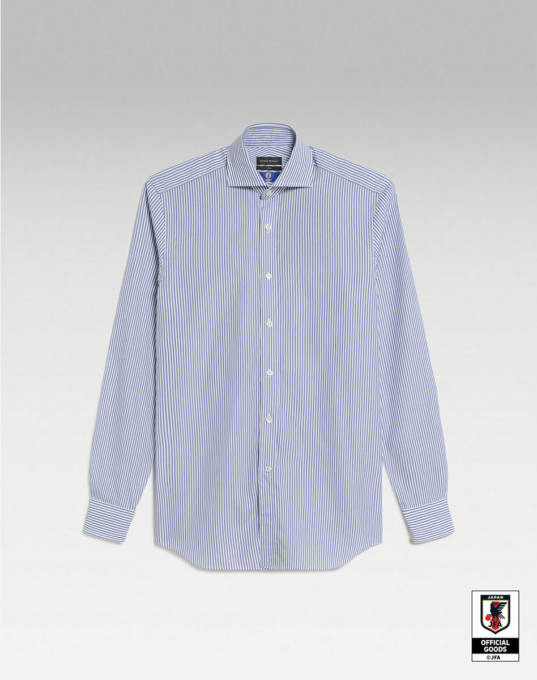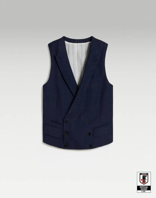 SAMURAI BLUE COLLECTION 2026の中核をなすのは、スーパー130のウールとカシミヤを用いたBourdon(ボードン)の3ピーススーツだ。シングルブレストジャケット、ダブルブレストウエストコート、フラットフロントトラウザーズで構成され、英国のミルで開発された特別な生地を採用。この3ピーススーツは 2026年に向けたチームのスタイルの基盤となる。スーツにはギザコットンのスプレッドカラーシャツを合わせ、唯一無二のアンサンブルを完成させている。