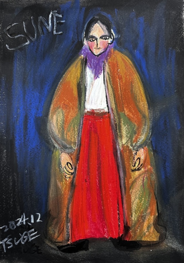観客を“現実世界”から“魔境”へと誘うデザイン画。奥深い山の厳しい寒さのための防寒、生活する上での動きやすさといった現実的なアイテムで構成されながら、現実とはどこか異なる違和感を生み出している。