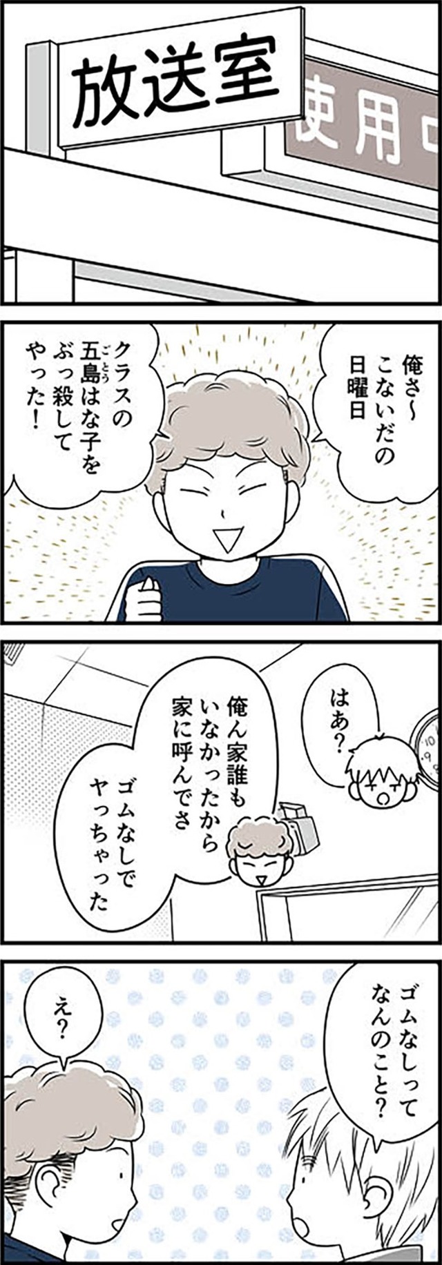 ゲンシくんの性的問題行動はどんどんエスカレート。そしてとうとう2人きりの放送室で事件が起きる――。