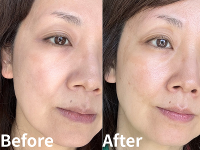 このほか、エイジングケアラインらしい嬉しい手応えも。鏡の前で顔の向きを変えながらチェックすると、やわらかな光を纏うようなツヤ感と明るさ、ふっくらとしたハリ感に満たされた肌に導かれた印象があります。加えて、毛穴や小ジワといった年齢サインも使用前よりも和らいだ印象に。横顔を見ながら、思わず笑みがこぼれました。