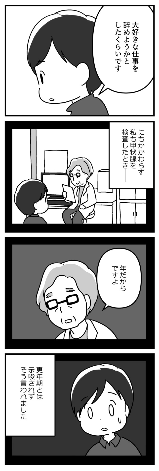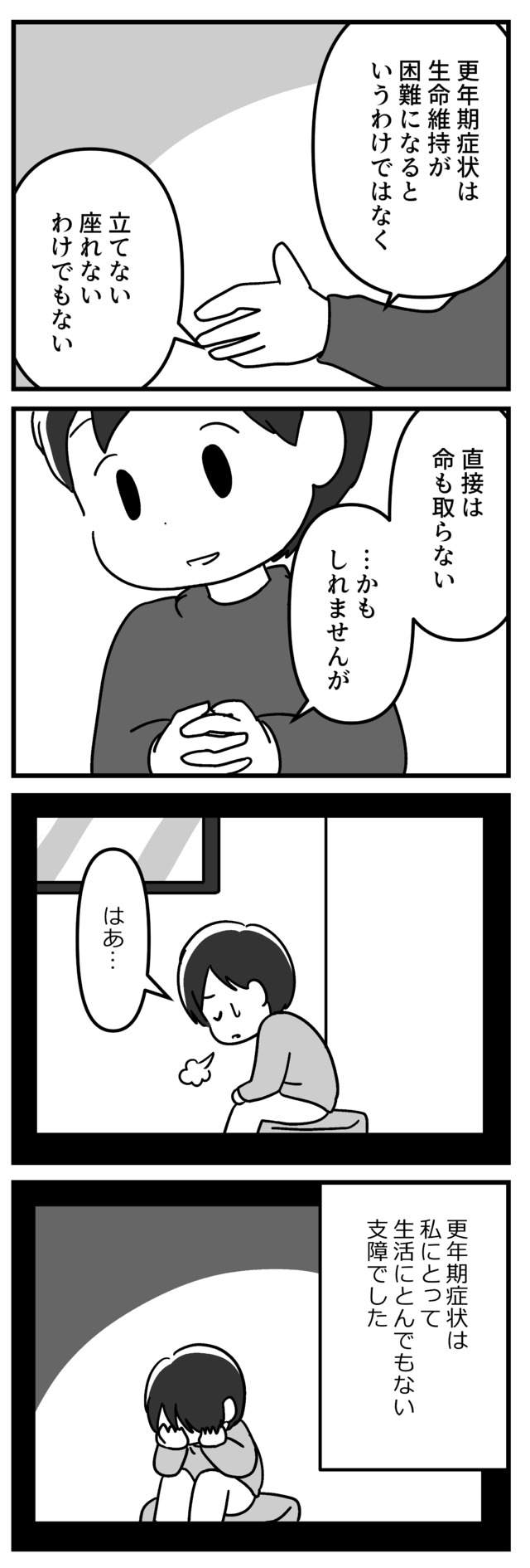 この時期に女性ホルモン減少に由来して起きる変化を「更年期症状」と呼びます。それが悪化すると「更年期障害」の状態になることも。