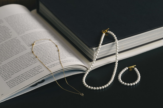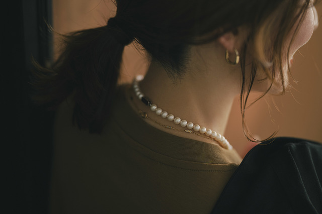 さらにパールネックレスやリングレットの留め具部分や、チェーンネックレスのトップ、チェーン、磁石カプセルなどにはサージカル(=医療用の)ステンレスを採用し、金属アレルギーがある方でも安心。傷がつきにくく、水やさびにも強いイオンプレーティングという加工も施されているので、汗をかきやすいこれからの季節やプールなど水際のお出かけにも気兼ねなく使えます。
