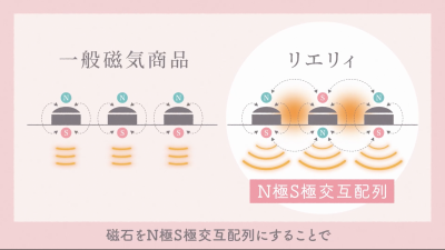 よくよく調べてみると一番のポイントは、磁石のN極とS極を交互に配列する独自の構造。磁力が点ではなく“面”として広がり、より広範囲にわたって血行を促すことができるそうで、その効果は医療機器としても認められているほど!