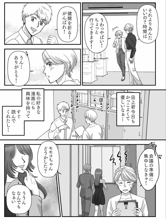 しかしある日、営業の藤田シオリが爽やかな新星・田上と急接近。その光景を目にしたモモコに沸き立つのは異様なプライド。