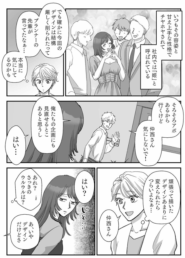 男が自分以外に優しくするのが気に入らない…!甘え上手な社内の「姫」の本性とは?【会社の姫はワタシ #2】